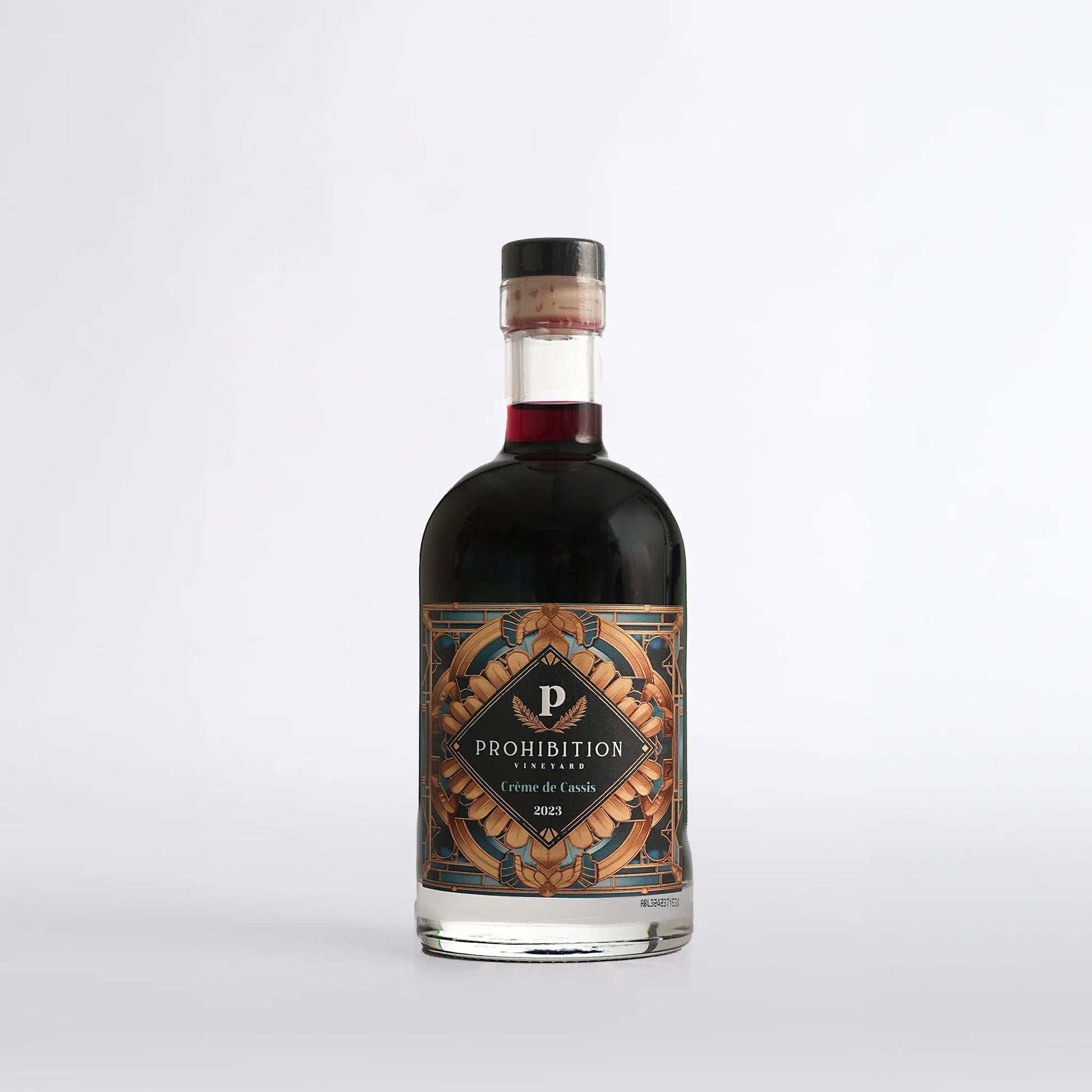 Sip on pure indulgence with our Creme de Cassis 2023. 100% Prohibition estate grown. This luscious black current liquor, is fortified with locally made brandy. Flavours of sweet spice and aromas of fig jam and roasted prune. The perfect addition to cocktails, on ice ice, or even over ice cream.